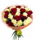 - Букеты микс - сочетание красных роз с белыми хризантемами или нежной зеленью делает композицию более легкой и подходящей для дружеского подарка.